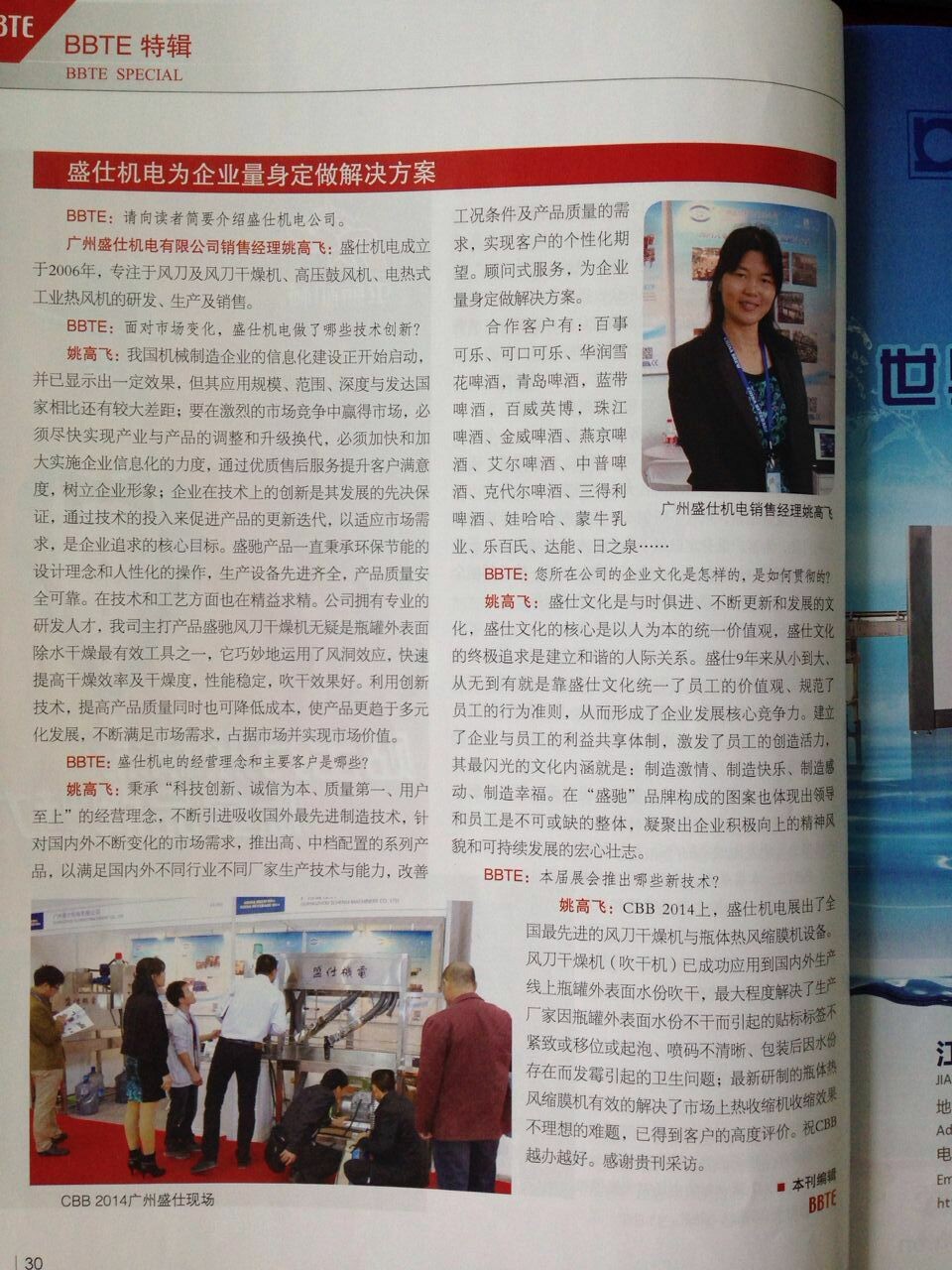热烈庆祝广州盛仕机电荣登BBTE酒、饮料技术装备杂志