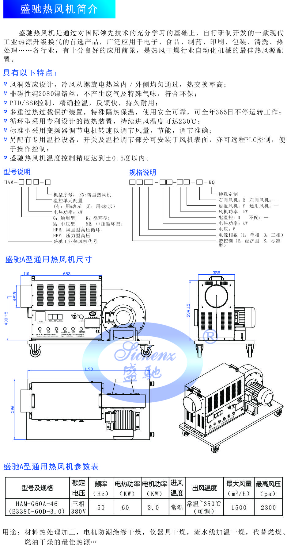 上述风量、风压为风机的性能参数,匹配热风机使用时有偏差!