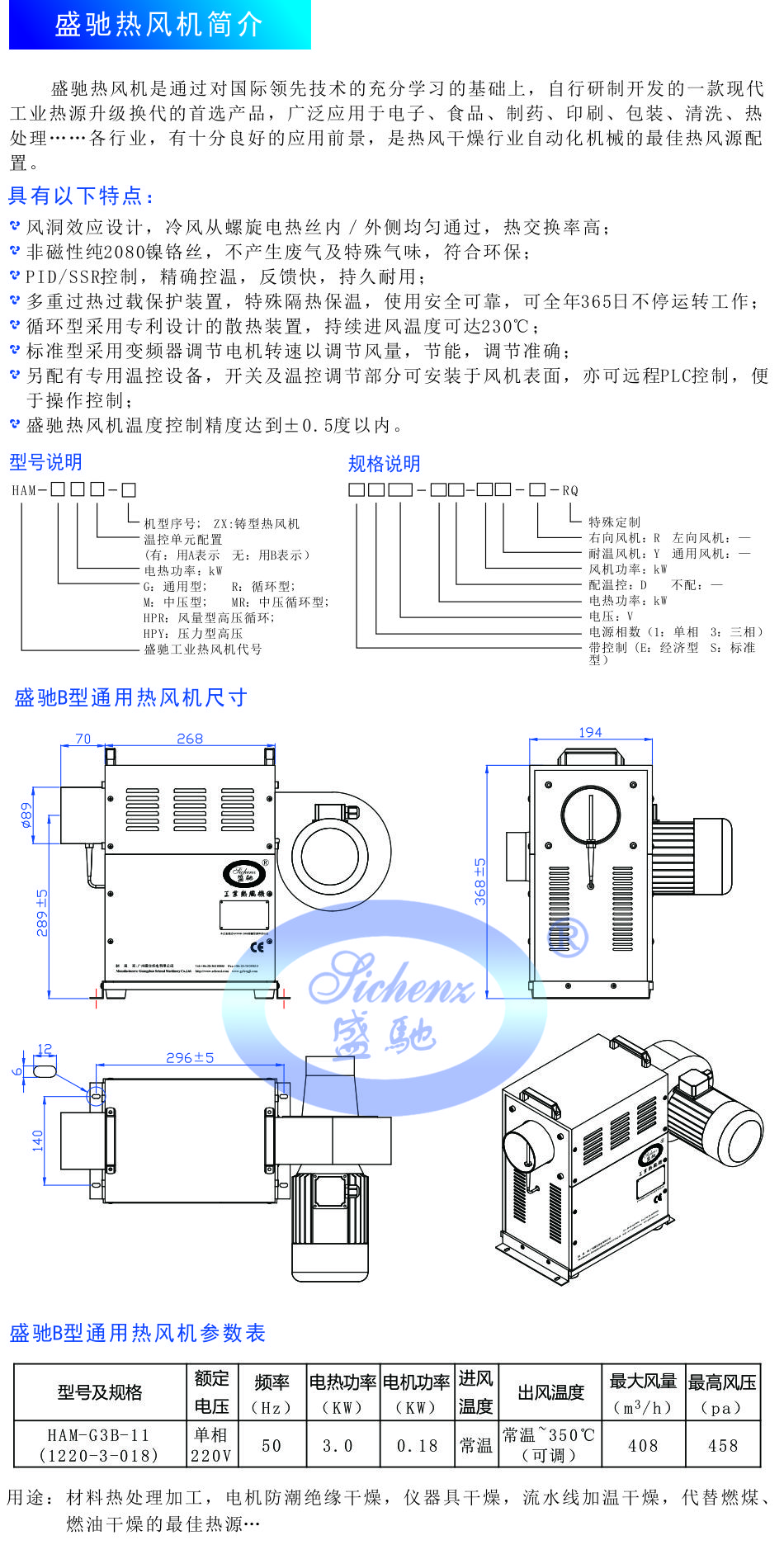上述风量、风压为风机的性能参数,匹配热风机使用时有偏差!