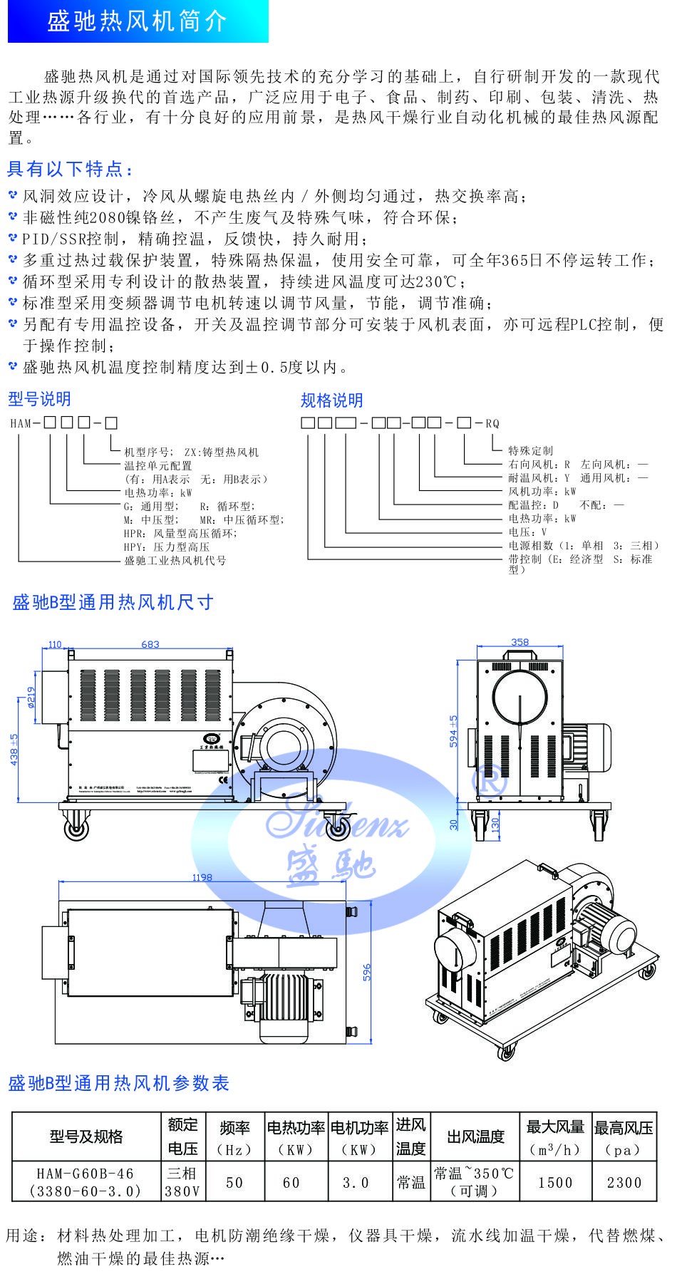 上述风量、风压为风机的性能参数,匹配热风机使用时有偏差!