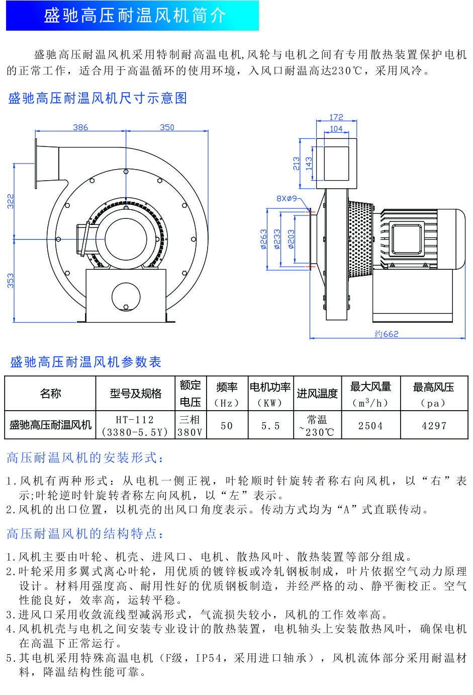 盛驰高压耐温风机HT-112