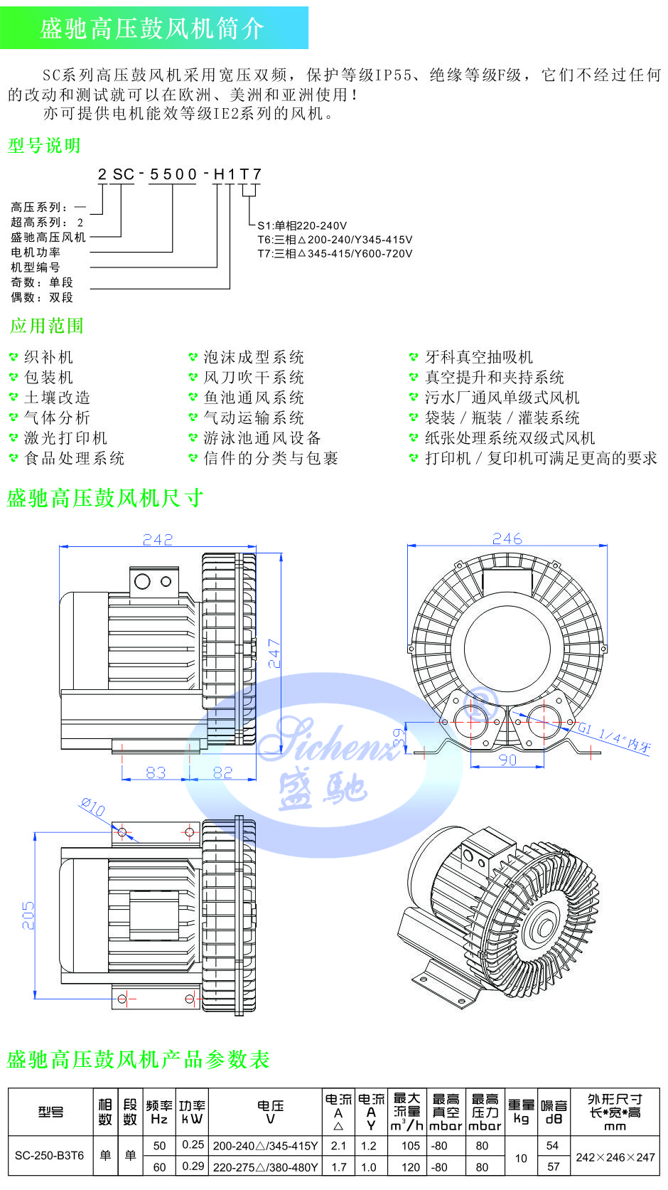 盛驰高压鼓风机SC-250-B3T6