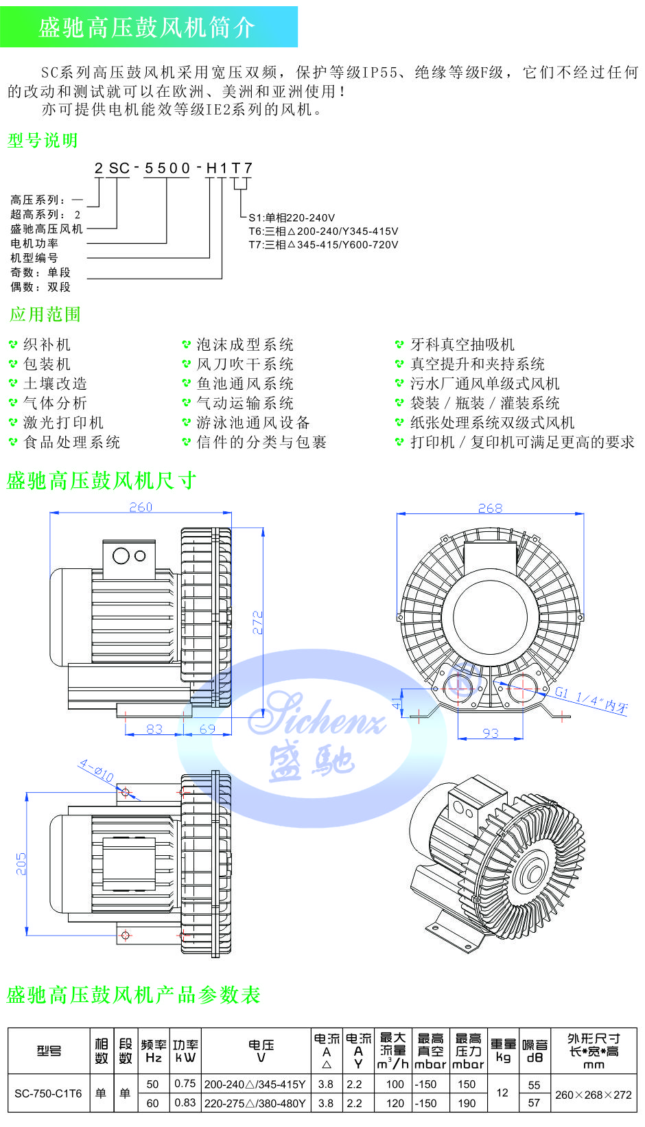 盛驰高压鼓风机SC-750-C1T6