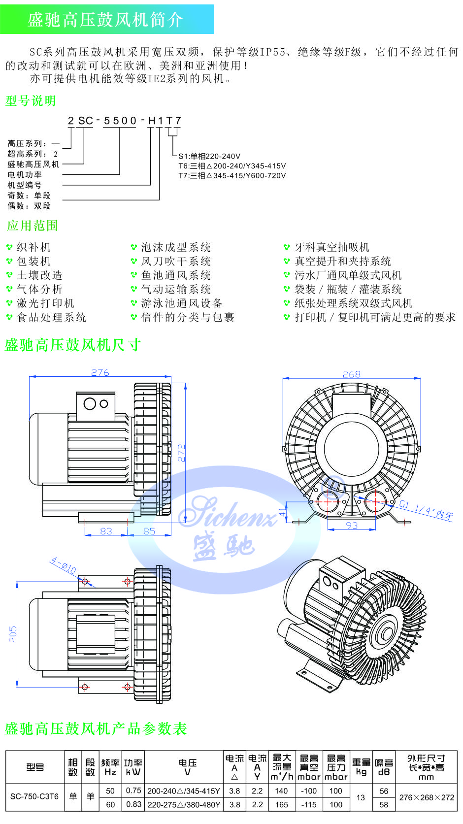 盛驰高压鼓风机SC-750-C3T6