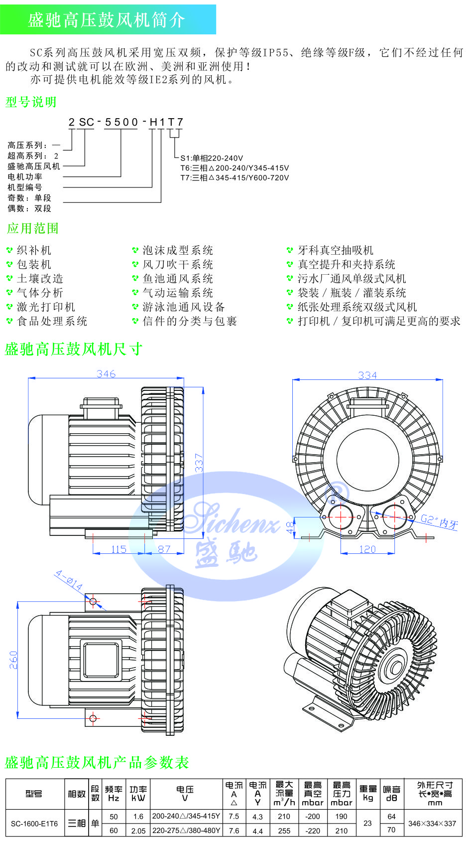 盛驰高压鼓风机SC-2200-E1T6