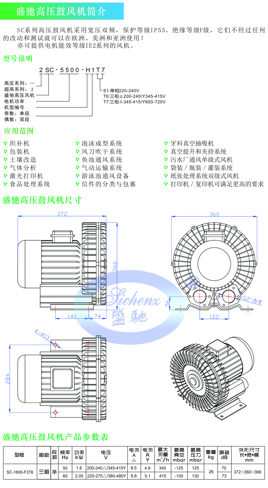 盛驰高压鼓风机SC-2200-F3T6