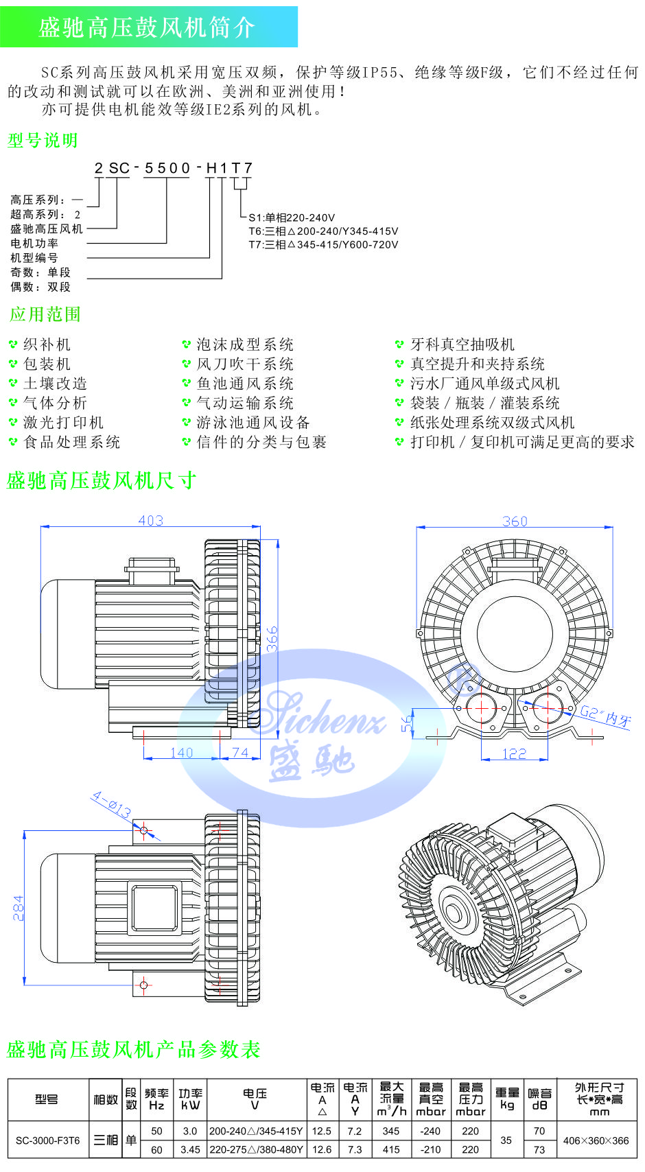 盛驰高压鼓风机SC-3000-F3T6