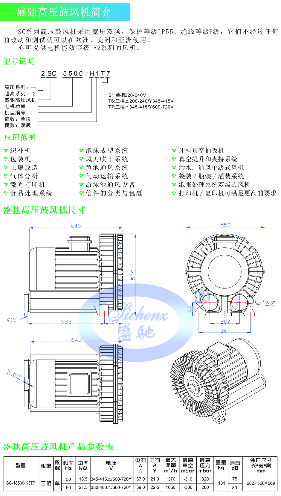 盛驰高压鼓风机SC-18500-K3T7